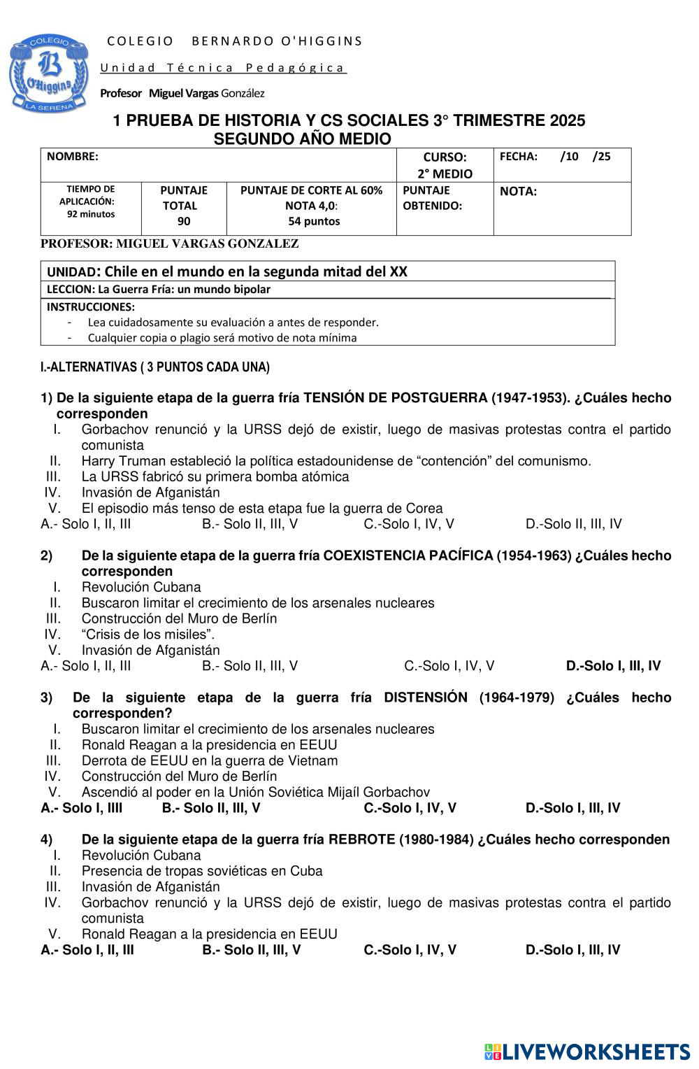 1 PRUEBA PARCIAL LA GUERRA FRIA PARTE DOS III TRIMESTRE
